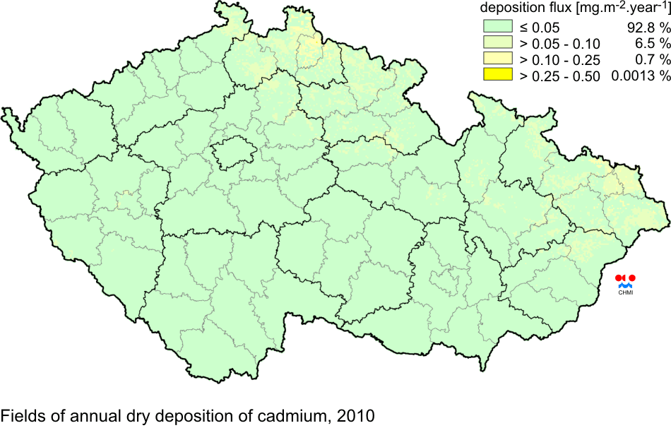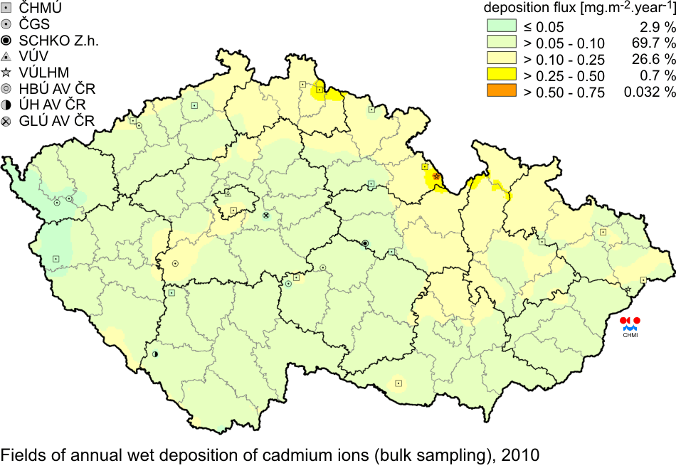 Fields of annual wet deposition of cadmium ions (bulk sampling),