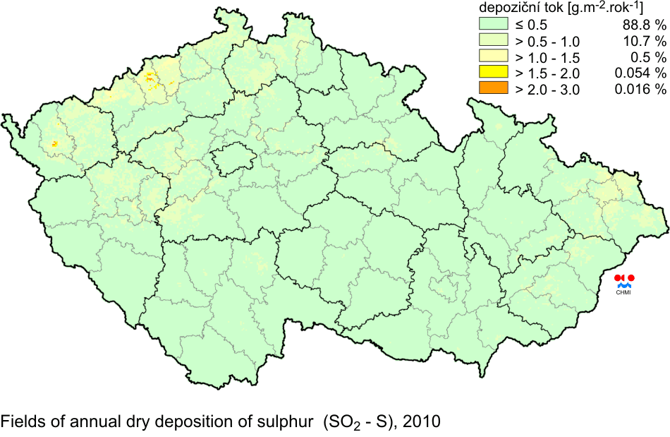 Fields of annual dry deposition of sulphur (SO2 - S), 2010 |