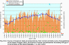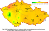 II.5 Evaluation of the smog regulation systems operation on the territory of the Czech Republic in 201 1The first three months of the year 2011 were normal in terms of temperature in the Czech Republic and the last three months of the year 2011 were significantly different. In January 2011 the average monthly temperature was –1.2 °C with the deviation from the normal 1.6 °C, the month of February with the average monthly temperature –2.0 °C recorded the deviation from the normal –0.9 °C and March with the average monthly temperature 3.8 °C had the deviation from the normal 1.3 °C. The months of October and November were normal as concerns temperatures, the average monthly temperature in October was 7.8 °C, in November 2.5 °C; the deviation from the normal was the same in both months, and namely –0.2 °C. December with the temperature 1.9 °C was strongly above the normal with the deviation from the normal 2.9 °C. The year 2011 as a whole with the average annual temperature 8.5 °C and the deviation 1.0 °C was above the normal. In terms of precipitation, the monthly totals of July, December and October 2011 were above the normal (184 %, 116 % and 105 %, respectively), the months of November and February were subnormal with the monthly totals 1 mm and 10 mm, which represents 2 % and 27 %, respectively. The highest precipitation for the whole year 2011 was recorded in the Plzeň Region and in the Karlovy Vary Region (104 % and 103 %, respectively) and the lowest precipitation was recorded in the ZlÃn Region (80 %). The annual average total for the whole Czech Republic was 627 mm, which represents 93 %. According to the results of the Prague-LibuÅ¡ station measured from 1.1 to 31.3.2011 the average daily temperatures significantly fluctuated around the long-term normal; on 7 and 8 January 2011 they were markedly above the normal, with the deviations 4.8 °C and 11.2 °C, respectively, in the period 4–12 February 2011 with the maximum deviation 7.4 °C and from 9 to18 March 2011 with the maximum deviation 5.8 °C. Significantly below-the-normal daily temperatures were recorded in the period 28.1.–2.2.2011 with the maximum deviation from the normal –8.3 °C and in the period 19.–26.2.2011 with the maximum deviation –9.8 °C. From 1.10. to 31.12.2011 there were recorded two periods longer than four days with the temperature deviation from the normal: 1–6 October with the maximum deviation 6.8 °C and 23–29 December with the maximum deviation 5.9 °C. The period from 11 to 17 November was significantly below the normal with the maximum deviation –6.3 °C. Significant precipitation was recorded in the following periods: 6.–14.1. with 20.1 mm, 16.–18.3. with 26.4 mm, 6.–12.10. with 20.8 mm, 18.–26.10. with 22.2 mm and 2.–7.12. with 19.3 mm. The lowest precipitation, only 0.6 mm, was recorded from 27.10. to 1.12.2011 (Figs. II.5.1, II.5.2). Anticyclonic situations occurred during the periods January–March and October–December 2011 in 50 % of cases and their relative frequency for the above months was markedly unsteady; it ranged from 5 to 97 %. The highest relative frequency of anticyclonic situations (97 %) was recorded in November 2011, in March (61 %) and in February (54 %). In December 2011 the anticyclonic situation was recorded in 5 % and in October 2011 in 17 % of cases. The anticyclonic situation in November 2011 caused unfavourable dispersion conditions resulting in high concentrations of suspended PM10.particles. The serious problem concerning air quality throughout the whole territory of the Czech Republic is caused by the occurrence of high concentrations of suspended particles of PM10 fraction. During the year 2011 55 stations of the total number of 78 AIM CHMI measuring localities (i.e. 70.5 %) exceeded the daily limit value for PM10 50 μg.m-3, which may be exceeded only 35x during the year as the maximum (Fig. II.5.3). In relation to high PM10 concentrations and the duration there occurred three periods: from 27.1. to 3.2.2011, from 15.2. to 6.3.2011 and from 13.11. to 25.11.2011; in the Ostrava-Karviná area the last period started already on 31.10.2011. The highest number of days with the Warning and Regulatory signals were issued in the Ostrava-Karviná area, and namely 61 days, in the TÅ™inec area 37 days, in the Ústà nad Labem Region 41 days, in the Pardubice Region 15 days and in the Central Bohemian Region 9 days. The Ostrava-Karviná area and the TÅ™inec area recorded more than double number of days with the above signals for the period January–March than in the months October–December. The Central Bohemian Region recorded more than double number of days for the period October–December. In the Pardubice Region the proportion of days was approximately equal. The number of the issued signals and the number of days with the signals Warning and Regulation are presented in Table II.5.1. The overview of the issued signals of Warning and Regulation in the year 2011 is presented in Table II.5.2. Synoptic situation from 17 February to 5 March 2011 On 17 February 2011 the weather above the territory of the Czech Republic was influenced by the marginal cyclone of 995 hPa with the centre above southern France. The anticyclone of 1035 hPa with the centre above Finland moved on the following days first southwards and then eastwards and from 20 February its centre 1030 hPa was above the Urals and its southwestern edge reached the territory of the Czech Republic. From 21 February its centre 1040 hPa was located southeast of Moscow and it intensified to 1055 hPa. The anticyclone blocked the passage of frontal disturbances to the central Europe till 26 February. On 27 February a weak occluded front passed the territory of the Czech Republic and till 4 March the weather was influenced alternately by the cyclone over Corsica and the ridge of high pressure stretching from the Carpathian area up to the eastern Atlantic. On 6 March t