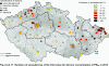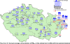 Fig. II.4.2.5 36th highest 24-hour concentrations and annual average concentrations of PM10 in 2002–2012 at selected stations with UB, SUB, I and T classification Fig. II.4.2.6 36th highest 24-hour concentrations and annual average concentrations of PM10 in 2002–2012 at selected rural (R) stations Fig. II.4.2.7 Field of the 36th highest 24-hour concentration of PM10 in 2012 Fig. II.4.2.8 Field of annual average concentration of PM10 in 2012 Fig. II.4.2.9 Stations with the highest exceedance of LV for 24-hour concentrations of PM10 in 2012 Fig. II.4.2.10 Stations with the highest exceedance of LV for annual concentrations of PM10 in 2012 Fig. II.4.2.11 Numbers of exceedances of the limit value for 24-hour concentration of PM10 in 2012 Fig. II.4.2.12 Annual average PM10 concentrations at the stations with the exceedance of the limit value, 2008–2012 Fig. II.4.2.13 Annual average concentrations of PM2.5 in the ambient air in 2004–2012 at selected stations Fig. II.4.2.14 Field of annual average concentration of PM2.5 in 2012 Fig. II.4.2.15 Share of localities with the exceedance of the limit value for 24-hour concentrations and annual average concentrations of PM10 and target value for the annual average concentration of PM2.5, 2000–2012 Fig. II.4.2.16 Average monthly PM2.5/PM10 ratio in 2012 Fig. II.4.2.17 Stations with the highest exceedance of LV for annual concentrations of PM2.5 in 2012