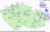 II. 4.2.1.2 Suspended particles, PM10 fraction and PM2.5 fraction The particles contained in the ambient air can be divided into primary and secondary particles. The primary particles are emitted directly into the atmosphere, from the natural sources (e.g. volcanic activity, pollen dust or sea spray aerosols) or anthropogenic sources (e.g. combustion of fossil fuels in stationary and mobile sources, tyre wear particulate matter, brake lining dust, road dust). Secondary particles are created in the atmosphere from their gaseous precursors SO2, NOx, NH3 and VOC through the process called gas-particles conversion. The main sources of total particle emissions, i.e. primary particles and precursors of secondary particles in the Czech Republic include power engineering (production of electric and heat energy), transport and public utility sector (incl. household heating) and agriculture. Due to the diversity of emission sources the suspended particles have various chemical composition and various size. The PM10 suspended particles have serious health impacts appearing already at low concentrations without a clear lower safe concentrations threshold. Health impacts of particles are influenced by their concentration, size, shape and chemical composition. The acute impact of particles may cause the irritation of mucous membranes of the respiratory system, the increased production of mucus etc. These changes may cause hypo-immunity and increase predispositions to respiratory diseases. The recurrent diseases may result in chronic bronchitis and cardiovascular disorders. The acute impact of particles may accentuate the symptoms in asthmatics and increase the total morbidity and mortality of population. The long-term exposure to particles may result in diseases of the respiratory and cardiovascular system. The level of health impacts is influenced by a number of factors, such as the current health condition of the individual, allergic predisposition or smoking. Children, the elderly and people with respiratory and circulatory system diseases are the sensitive groups [22]. Recently it has been proved that the most serious health impacts, i.e. cardiovascular and respiration problems and increased mortality, are produced by fine and ultrafine particles [23]. According to WHO the death rate in the towns with high level of ambient air pollution is increased by 15 to 20 % in comparison with the death rate in the towns with relatively clean air [24]. Air pollution caused by PM10 remains one of the main problems of air quality assurance. In almost all localities in the Czech Republic there is an apparent increasing trend in air pollution caused by PM10 from 2001 to 2003. In 2004 this trend stopped but in 2005 the PM10 concentrations increased again at almost all localities. In 2006 this trend continued at most localities in annual averages. In 2007, on the contrary, the decrease of PM10 concentrations was recorded. In 2008 the decreasing trend continued at most stations, mainly in daily concentrations. In 2009 there prevailed a slight increase, more marked in the agglomeration Moravian-Silesian Region. In 2010 the PM10 concentrations increased, both in daily and annual characteristics. The growth of concentrations of the suspended particles in 2010 was caused mainly by repeated occurrence of unfavourable meteorological and dispersion conditions in the winter period and at the end of the year. The increase of PM10 concentrations in 2010 was caused probably also by the coldest heating season for the recent 10 years. In 2011 the slight decrease of the 36th highest PM10 concentration was recorded (in average for all types of stations). In 2012 the year-to-year decrease of the 36th highest PM10 concentration was measured again, and namely by more than 5 μg.m-3 (in average for all types of stations which measured the 36th highest PM10 concentration both in 2011 and 2012). In 2012 also the decrease of average annual concentration was recorded at most measuring stations (Figs. II.4.2.5 and II.4.2.6). The year-to-year comparison shows the decrease of the maximum average daily PM10 concentrations as well as the share of the territory with daily limit value exceedances. It is clear from the data from the localities where the annual limit value was exceeded at least once in the recent 5 years (2008–2012) that the most loaded areas are: the Ostrava-Karviná area, the agglomerations Prague and Brno and the Kladno area. Further, the data show that the highest PM10 loads were recorded in the year 2010, as concerns the assessment of the recent 5 years (Fig. II.4.2.12 and Table II.4.2.6). The exceedance of the daily limit value for PM10 in 2012 at least in one locality was recorded in all zones and agglomerations (Fig. II.4.2.11). In comparison with the year 2011 the highest 36th average 24-hour concentration decreased at 81 % of stations (the same file of stations with measurements both in 2011 and 2012 has been assessed). In 2012 the most affected area of large coverage was, similarly as in the previous years, the agglomeration Ostrava/Karviná/Frýdek-MÃstek. The limit value of 24-hour PM10 concentration was exceeded in 2012 in all localities in the agglomeration the Ostrava/Frýdek-MÃstek/Karviná, in the zone Moravia-Silesia. In the zone Central Moravia the daily limit value was exceeded at three quarters of measuring stations, in the Brno agglomerations at one half of the stations. The remaining areas recorded the exceedance at approx. 11 % of the station (zones South-East, South-West and North-West), 22 % (zone Central Bohemia), 28 % (zone North-West) to 38 % of the stations (Prague agglomeration). Of the total number of 120 localities with sufficient number of data for the assessment 50 localities (42 % of the stations) reported the exceedance of 24-hour PM10 limit value. In comparison with the year 2011, when the daily limit value was exceeded in 63 % of the station, it can be stated that the situation has impro