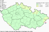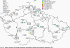 Fig. III.1 Station networks monitoring atmospheric precipitation quality and atmospheric deposition, 2012 Fig. III.2 Fields of annual wet deposition of sulphur (SO42-–S), 2012 Fig. III.3 Fields of annual dry deposition of sulphur (SO2–S), 2012 Fig. III.4 Fields of annual total deposition of sulphur, 2012 Fig. III.5 Fields of annual throughfall deposition of sulphur, 2012 Fig. III.6 Fields of annual wet deposition of nitrogen (NO3-–N), 2012 Fig. III.7 Fields of annual wet deposition of nitrogen (NH4+–N), 2012 Fig. III.8 Fields of annual total wet deposition of nitrogen, 2012 Fig. III.9 Fields of annual dry deposition of nitrogen (NOx–N), 2012 Fig. III.10 Fields of annual total deposition of nitrogen, 2012 Fig. III.11 Fields of annual wet deposition of hydrogen ions, 2012 Fig. III.12 Fields of annual dry deposition of hydrogen ions corresponding to SO2 and NOx deposition, 2012 Fig. III.13 Fields of annual total deposition of hydrogen ions, 2012 Fig. III.14 Fields of annual wet deposition of fluoride ions, 2012 Fig. III.15 Fields of annual wet deposition of chloride ions, 2012 Fig. III.16 Fields of annual wet deposition of lead ions, 2012 Fig. III.17 Fields of annual dry deposition of lead, 2012 Fig. III.18 Fields of annual wet deposition of cadmium ions, 2012 Fig. III.19 Fields of annual dry deposition of cadmium, 2012 Fig. III.20 Fields of annual wet deposition of nickel ions, 2012 Fig. III.21 The development of annual deposition of sulphur (SO42-–S, SO2–S) and oxidated forms of nitrogen (NO3-–N, NOx–N) and hydrogen in the Czech Republic, 1995–2012 Fig. III.22 The development of the ratio of nitrate/sulphate concentrations in atmospheric deposition (expressed as μeq. l-1) at the CHMI stations, 1998–2012 Fig. III.23 The development of annual wet deposition at selected stations in 1991–2012, Czech Republic