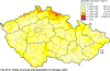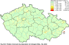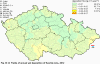 the Table III.1. Throughfall sulphur deposition chart was generated for forested areas from the field of sulphur concentrations in throughfall and a verified field of precipitation, which was modified by a percentage of precipitation amounts measured under canopy at each station (61–90 % of precipitation totals in an open area for the year 2012). Throughfall deposition generally includes wet vertical and horizontal deposition (from fogs, low clouds and rime) and dry deposition of particles and gases in forests. In case of sulphur, its circulation within the forests is negligible; it should provide a good estimate of total deposition. The fields of dry deposition of Pb and Cd contained in SPM (dry Pb and Cd deposition) were derived from the fields of these metals’ concentrations in the ambient air (or on the basis of air pollution field of annual average of PM10 concentrations and values of IDW interpolation of the shares of the respective metal in dust). The deposition rate of Cd contained in SPM was taken as 0.27 cm.s-1 for a forest and 0.1 cm.s-1 for unforested terrain; the figures for Pb are 0.25 cm.s-1 for a forest and 0.08 cm.s-1 for unforested terrain [49]. The data on precipitation quality are controlled routinely using the method of ion balance calculation. The difference between the sum of cations and the sum of anions in the sample should meet the allowable criteria which differ slightly in various organizations. Another control is carried out by comparing the calculated conductivity and the measured conductivity which both should also meet the allowable criteria. Analysis of the blank laboratory samples is also used and blank field samples are monitored and assessed continuously. This enables the control of work during sampling and the control of changes occurring due to transport, manipulation, storage and preparation of the samples prior to the chemical analysis. Results