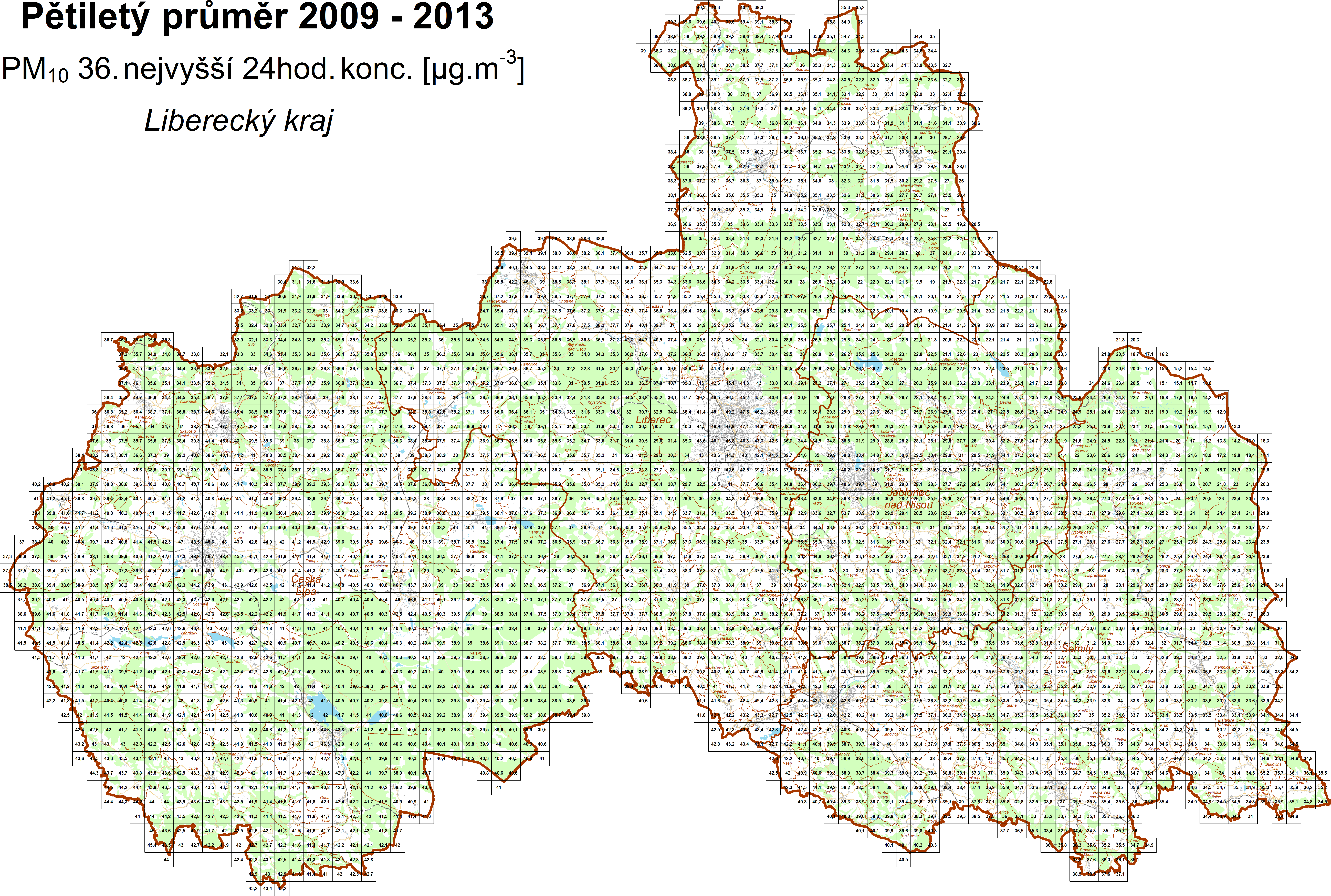 | PM10 - m36 | částice PM10, 36. max. 24hod. průměr |