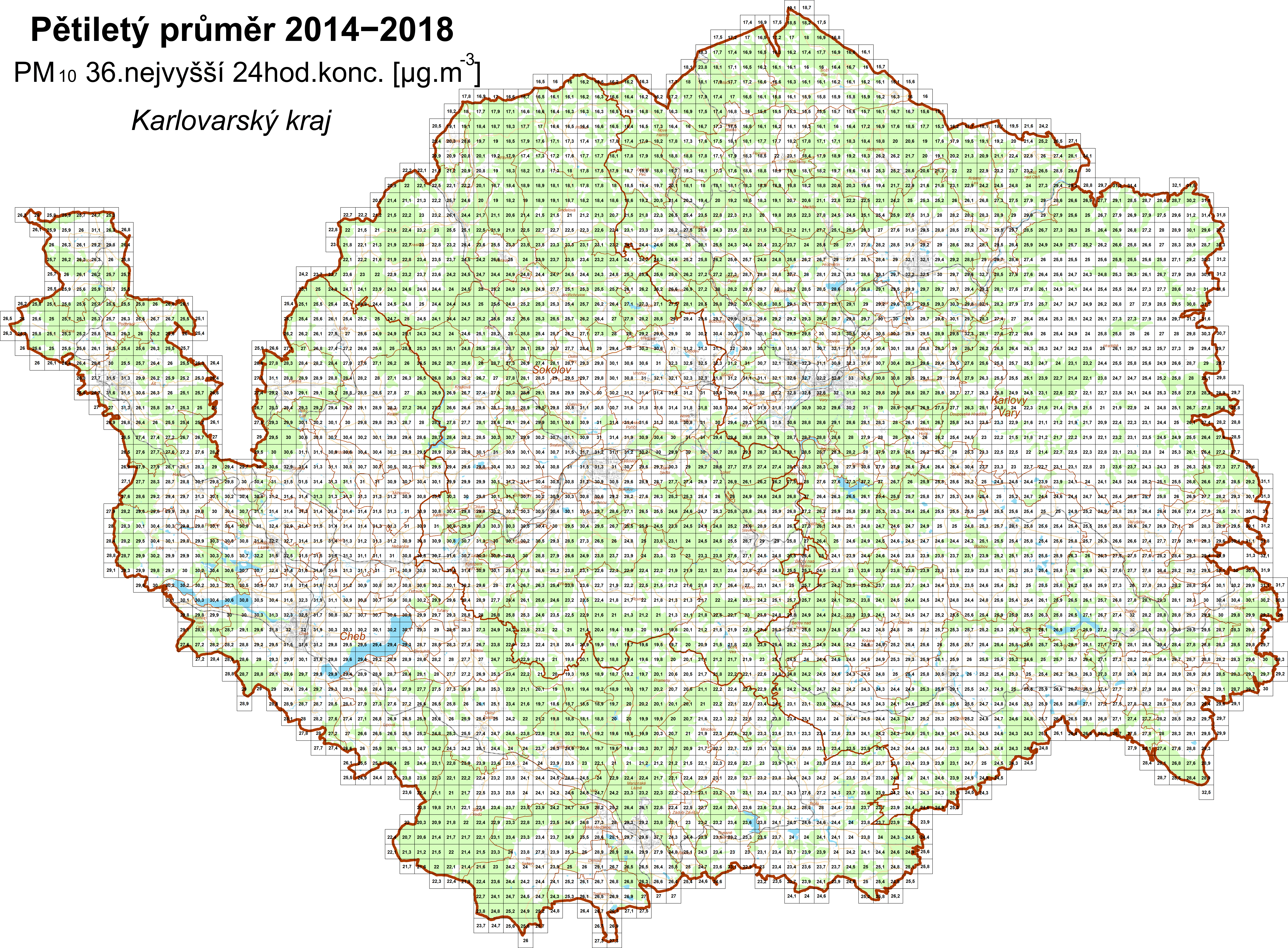 | PM10 - m36 | částice PM10, 36. max. 24hod. průměr |