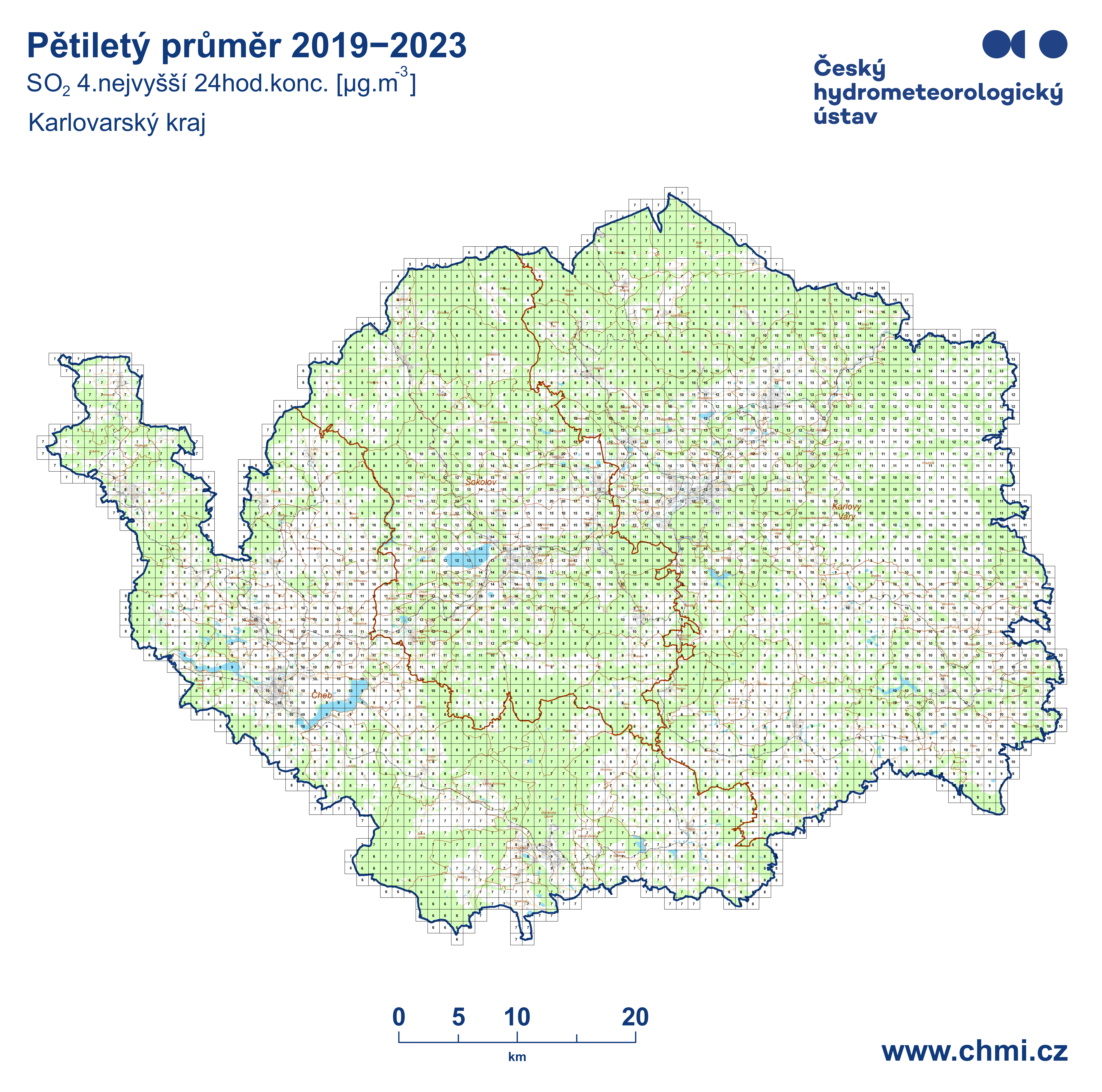 | SO2 - rp | oxid siřičitý, roční průměr |