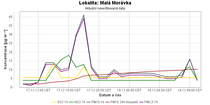 Aktuální přehled dat z automatizovaných stanic (neverifikovaná data)