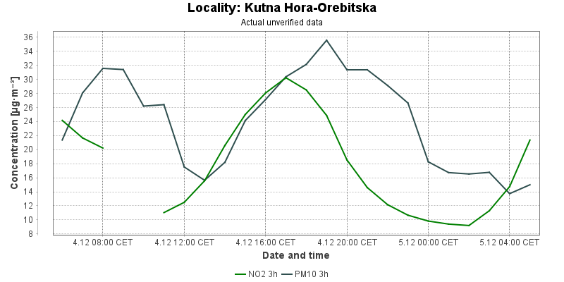 Actual measured level of air pollution