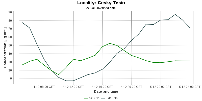 Actual measured level of air pollution