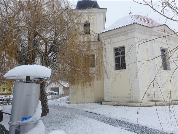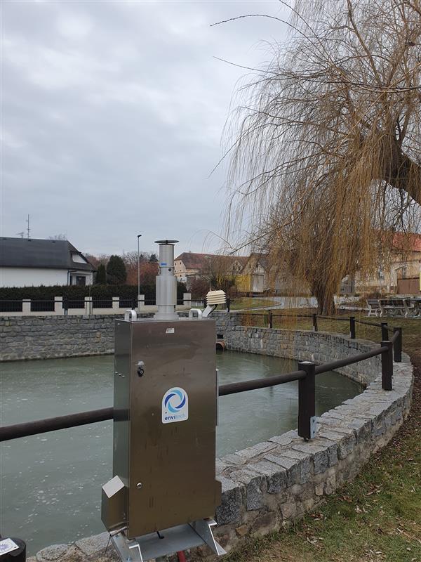 | Samostatný vzorkovač na travnaté ploše na návsi u vodní nádrže. Měření probíhá na základě objednávky obce Kostelec mimo národní imisní síť. | ||