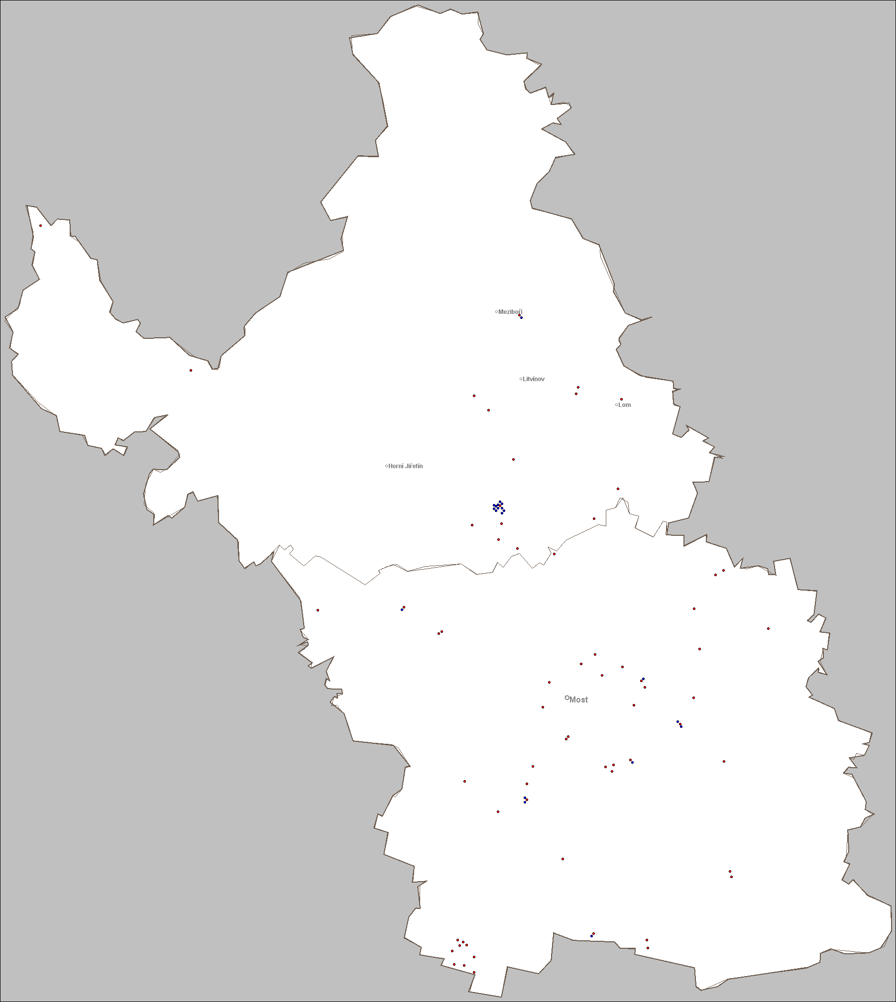 Grafický navigátor vyžaduje JavaScript. Provozovny, které jsou umístěny ve stejné lokalitě a na mapě by se vzájemně překrývaly, jsou označeny bodem s modrou barvou. Jejich skutečné umístění odpovídá souřadnici provozovny s bodem, označeným v místě shluku červenou barvou.
