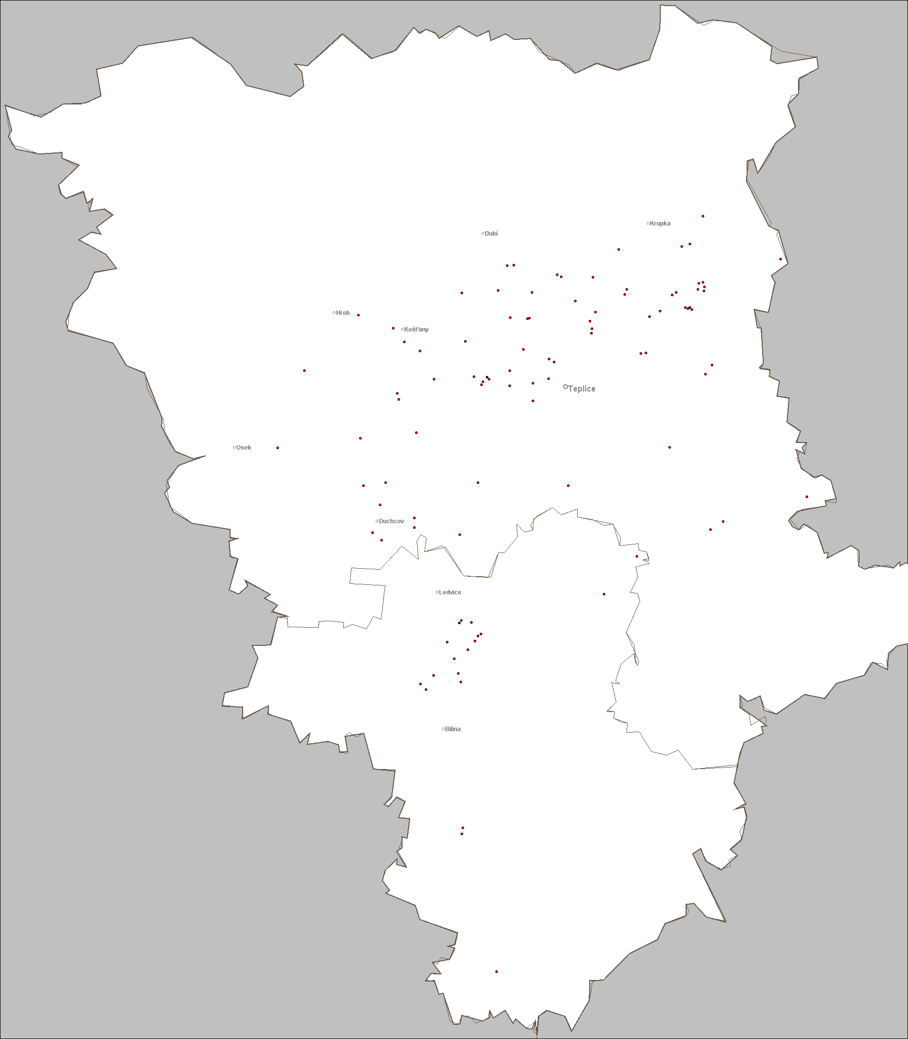 Grafický navigátor vyžaduje JavaScript. Provozovny, které jsou umístěny ve stejné lokalitě a na mapě by se vzájemně překrývaly, jsou označeny bodem s modrou barvou. Jejich skutečné umístění odpovídá souřadnici provozovny s bodem, označeným v místě shluku červenou barvou.